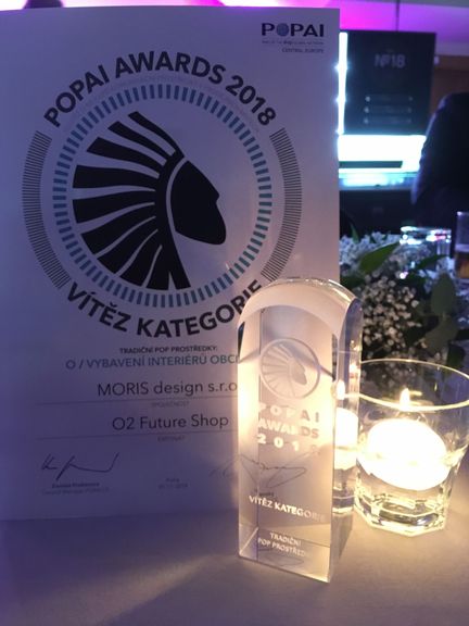 Interiér Prodejna Design Síť prodejenVe čtvrtek 29. 11. proběhlo největší setkání předních českých firem v oblasti POP a retail komunikace a zároveň vyhlašování vítězů POPAI Awards pro rok 2018. U této události nemůžeme chybět a hrdě si odvážíme vítězství v kategorii „Vybavení interiérů obchodů“ za náš koncept O2 FUTURE SHOP. Je to pro nás důležité ocenění naší intenzivní a náročné práce na unikátním projektu v oblasti in-store designu, u kterého jsme od samého počátku a který už nyní je jedním z největších v historii MORIS design.